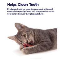 - HELPS CLEAN TEETH: Petstages dental cat chew toys are made with mesh material that gently cleans soft plaque and tartar off your kitty's teeth as they play and chew