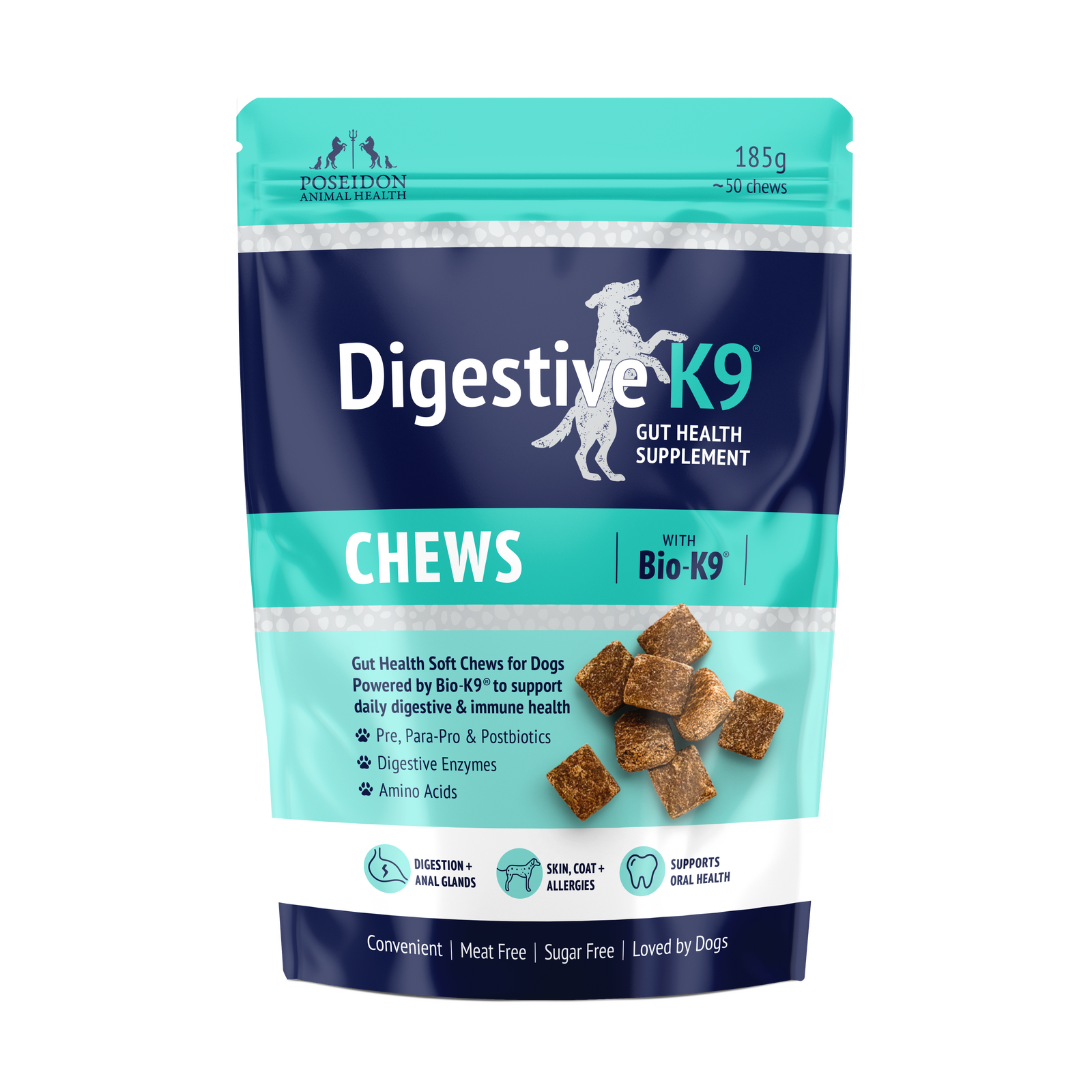 DigestiveK9 Chews combines amino acids, digestive enzymes and a unique blend of Pre, Para-Pro and Postbiotics to support the WHOLE of the gut - available in a convenient soft chew. Always consult your veterinarian for specific advice for your dog.