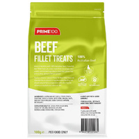NEW from Prime100 | Made in Australia with 100% Australian Beef, Prime100 Beef Fillets are a treat made from one single meat protein and limited ingredients. Grain free, gluten free and soy free, with no artificial colours.