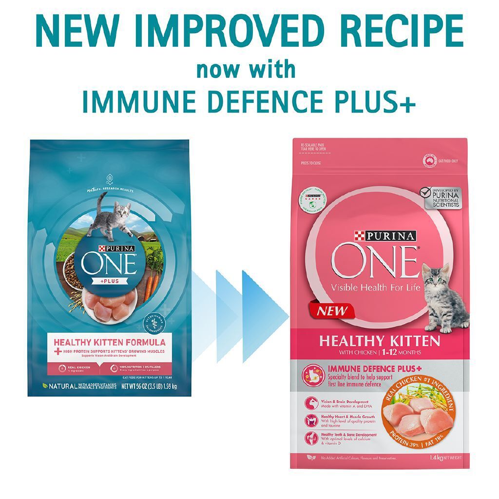 The Purina ONE Kitten Dry Cat Food Chicken has been specially formulated with beta glucans, vitamin C & E and omega 3 and 6 fatty acids. Working in parallel, this blend supports first line immune defence for the healthy growth and development of your kitten. By feeding Purina ONE, you are helping to give your kitten an optimal start to a long and healthy life. Purina ONE is proud to be the SPCA Food of Choice, feeding the cats and dogs of the SPCA with premium nutrition.