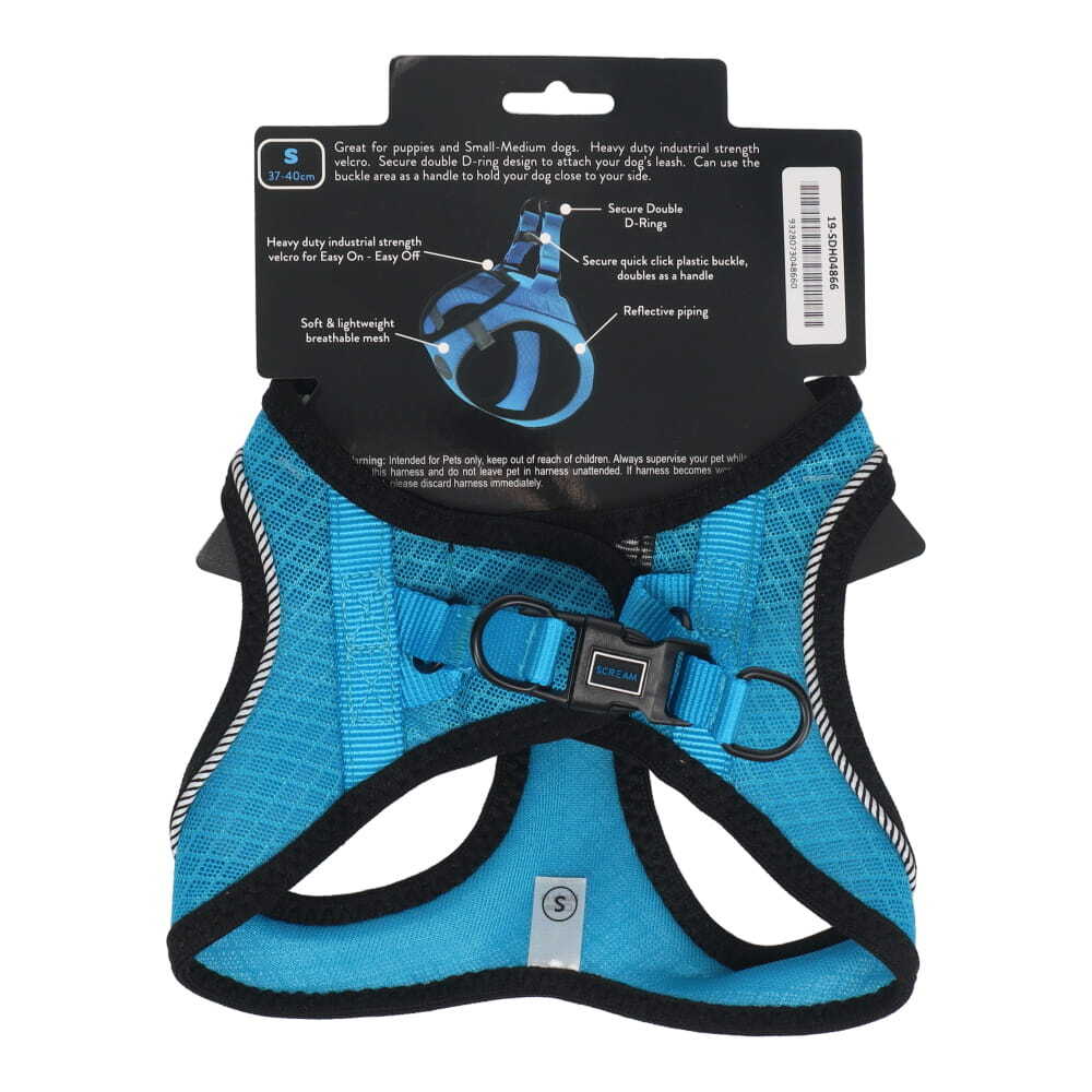 The Scream Quick Fit Reflective Dog Harness is a soft, lightweight and breathable harness that is made from durable, high quality air mesh material in stylish Live Life LOUD vibrant colours, making this harness great for Puppies and Small-Medium size Dogs! Designed with heavy duty industrial strength velcro for easy on and easy off as well as a secure plastic buckle and double D-rings, making it easy to attach your dog's leash. This area can also double as a handle to hold your dog close to your side. The Piping has reflective stitching to help keep your dog safer on night walks!