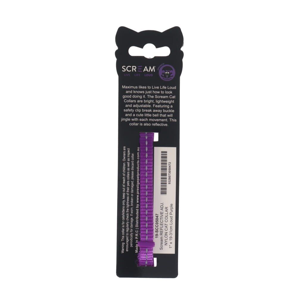 The Scream Nylon Cat Collars are bright, lightweight, reflective, adjustable and feature a safety clip break-away buckle for safety. These cat collars also have a cute little bell that will jingle with each movement.