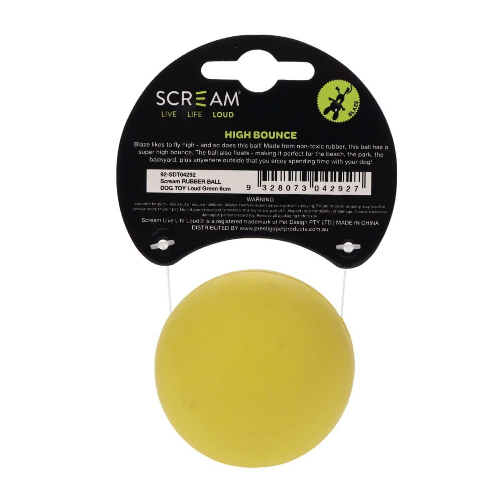 Blaze likes to fly high - and so does this ball! The Scream Rubber Ball Dog Toy is made from non-toxic rubber, that has a super high bounce plus it floats - making it perfect for the beach, the park, the backyard, plus anywhere outside. A great interactive outdoor dog toy for chase and fetch, meaning more Scream fun for you and your dog to enjoy and live life loud, just as Blaze does!