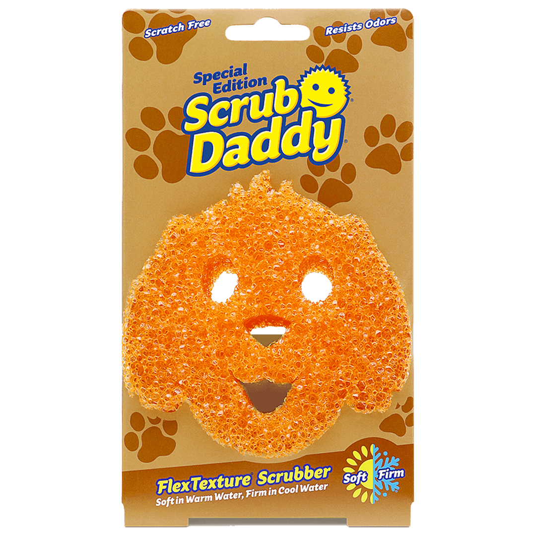 Scrub Daddy Dog is a cleaning sponge made from FlexTexture. An exclusive material that changes texture based on your water temperature. Firm in cold water for tough scrubbing, soft in warm water for light cleaning.