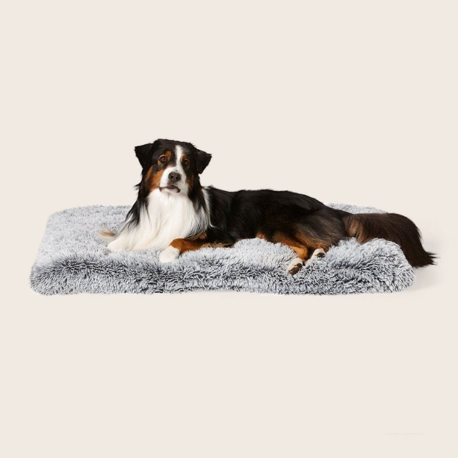- Snuggly, long pile fur helps calm dogs