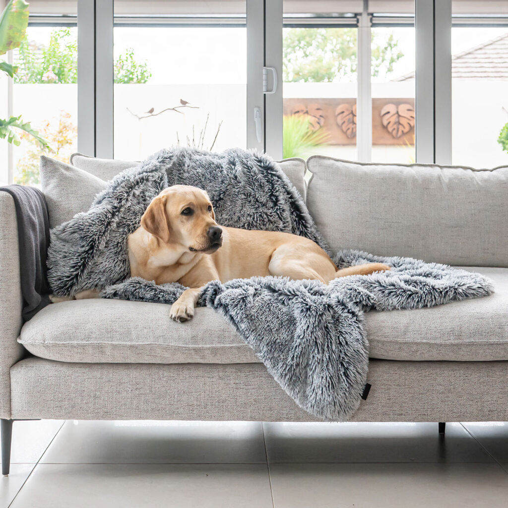 Our soft and snuggly Calming Pet Blanket was designed to offer your pet warmth and security. Use to cover your pets' bed, the sofa or anywhere else your dog likes to lay to ensure they are comfy and calm at all times. Made in two generous sizes to suit most dogs from soft and soothing furniture grade vegan fabric. Fully machine washable for easy maintenance.