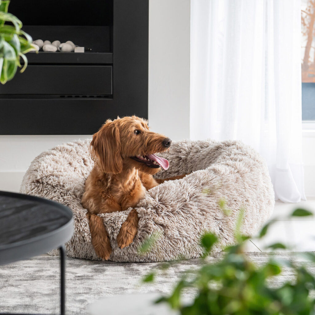 Designed to offer comfort, warmth and protection it's made from extra-plush vegan faux fur. Full to the brim with our unique blend of PET fibre filling (made from post-consumer recycled plastic bottles and Australian foam), it has been designed to offer your dog the perfect combination of comfort and stability, using sustainable materials. It's brilliant at retaining its loft, ensuring a cosy calming burrow to snuggle down in all year round.