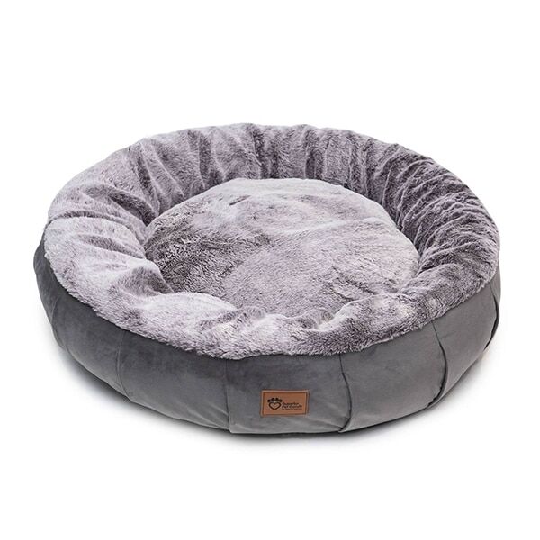 Superior Pet Goods Harley Dog Bed Velvet Grey with Faux Rabbit Fur Jumbo