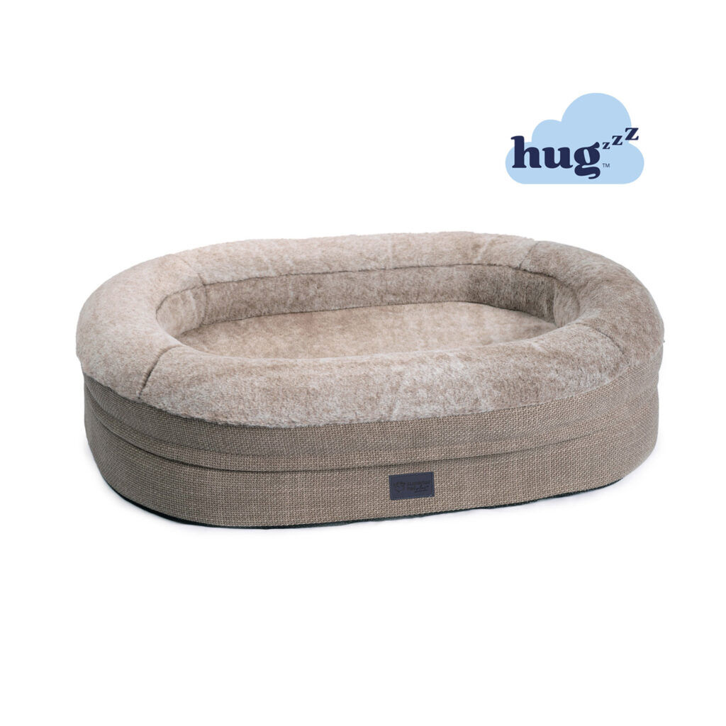 - A bolstered oval ring filled with Hugzzz memory foam flakes encloses your pet, creating a walled bed that fosters a feeling of security. This cosy rim offers a backrest and a comforting place for pets to rest their chins or snuggle in ultimate comfort