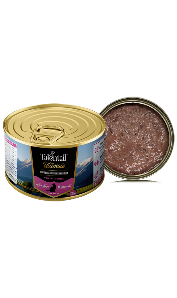 Made with an outstanding 93% premium chicken meat, organs, and broth, this ultra-high meat formula provides species-appropriate, high-energy nutrition suitable for cats of all life stages. Sourced exclusively from the clean, green regions of Oceania, our single-protein recipe supports easy digestion and helps minimise food sensitivities. The soft, velvety mousse is ideal for kittens, seniors, and fussy eaters, as well as cats recovering from illness. Each serving is enhanced with: Kakadu Plum, an Australian superfruit rich in antioxidants for digestive and immune support Prebiotics and Postbiotics to foster a balanced gut microbiome Algae Oil, a premium plant-based source of Omega-3 to promote healthy skin, a glossy coat, and cognitive wellbeing Serve as a complete, indulgent meal or pair with Talentail Ultimate kibble for a nourishing, satisfying feeding experience.