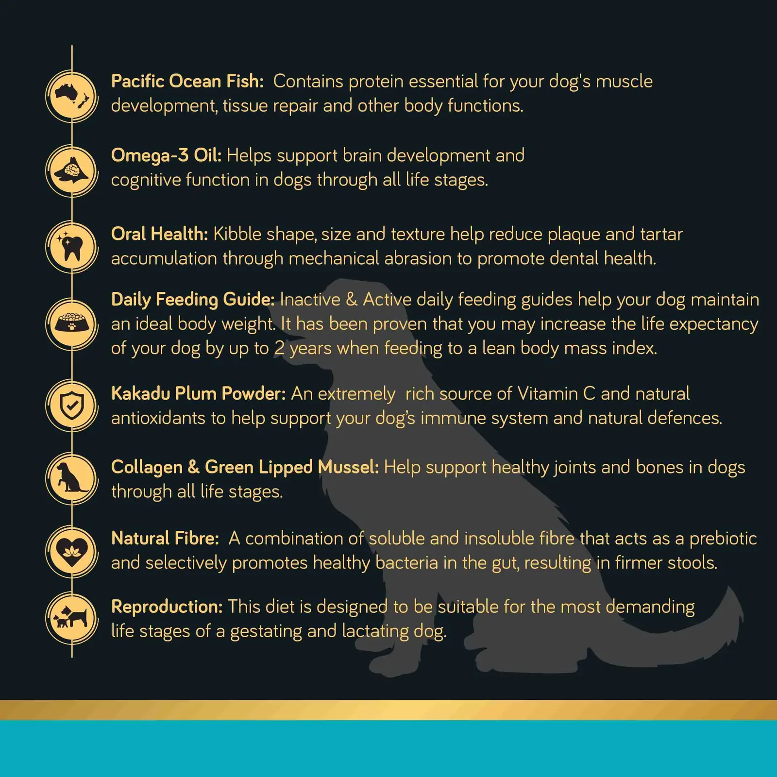 Formulated with 75% Fish and Oils to more closely mirror the natural diet of your dog's ancestors. 100% premium ingredients, carefully selected and sourced from Australia and New Zealand to ensure the best quality. Includes Kakadu Plum, an Australian native superfood, to help support your dog's immune system. Fish provides a great source of protein which may be beneficial to dogs with food allergies or other dietary intolerances.