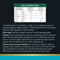 Our Inactive & Active daily feeding guides help your dog maintain an ideal body weight. It has been proven that you may increase the life expectancy of your dog by up to 2 years when feeding to a lean body mass index.