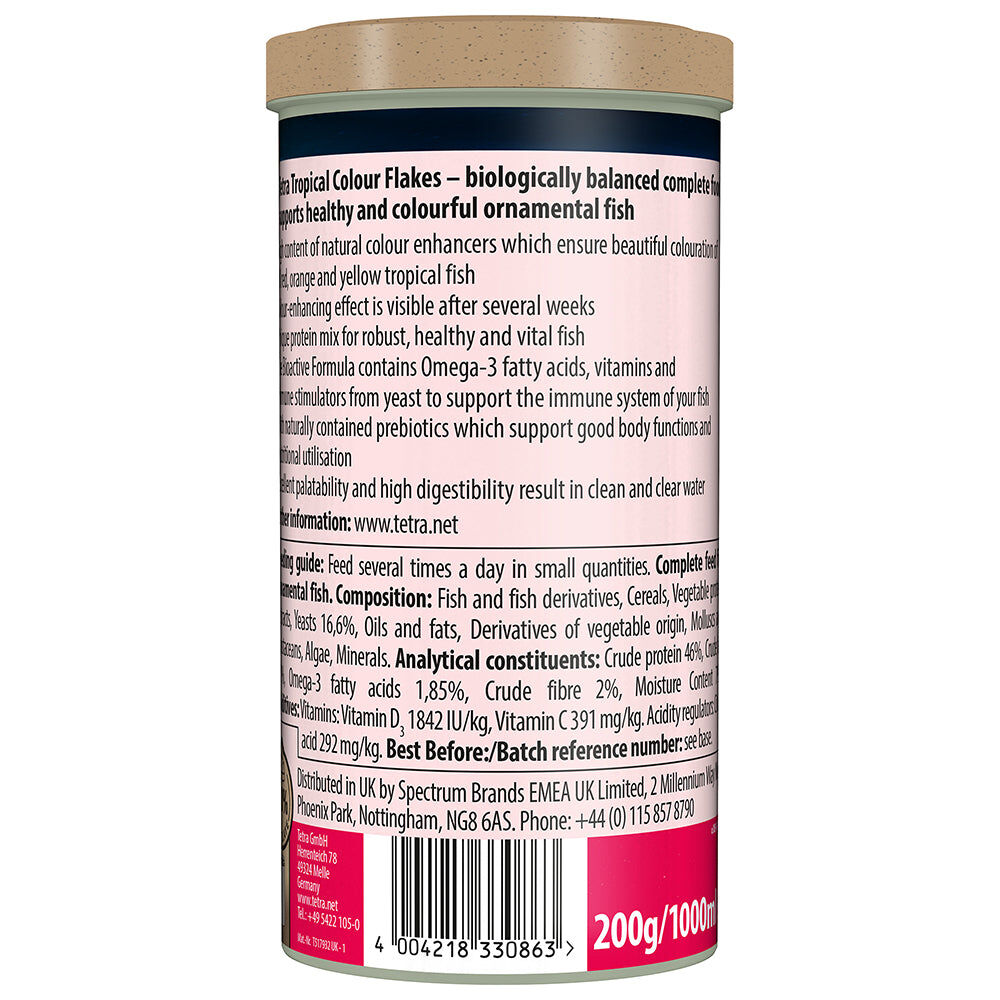 - High content of natural colour enhancers which ensure beautiful colouration of all red, orange and yellow tropical fish