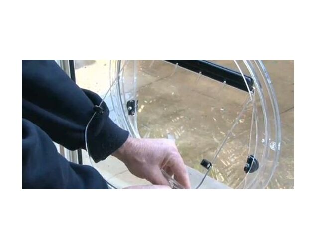 - The hole in the glass should be 385mm in diameter. The hole should be sealed by the glazier to maintain the integrity of the double glazing.