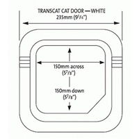 The Transcat white cat door is versatile, and equally at home installed in glass or wood. It has a white frame with clear flap and 4-way locking tab that is operated from inside.