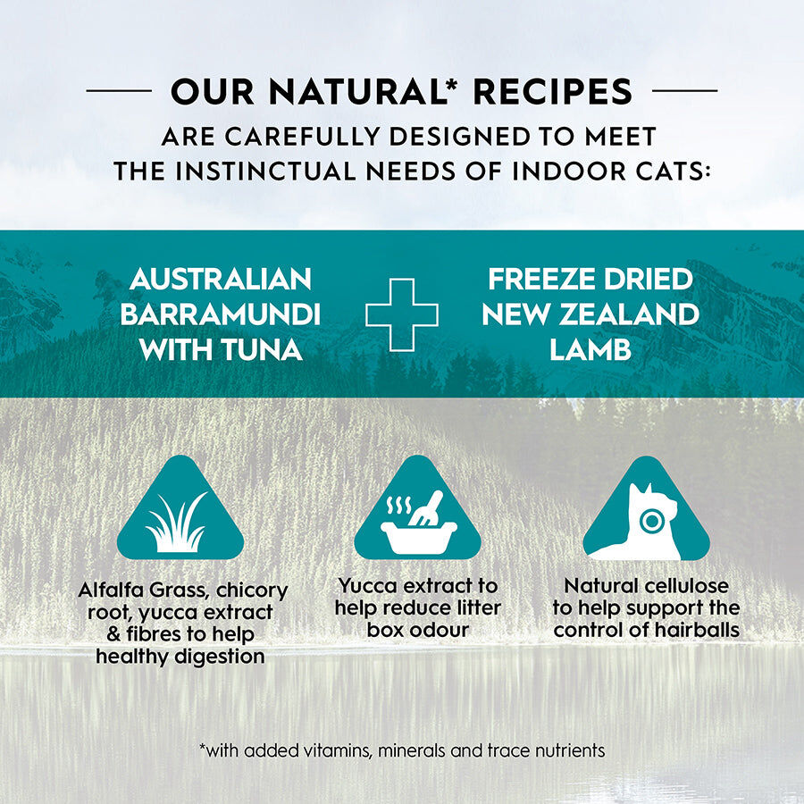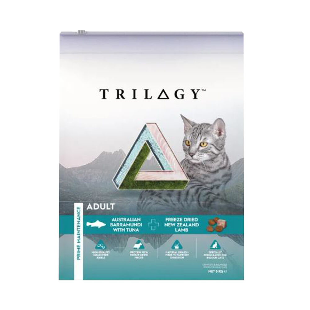 TRILOGY™ Australian Barramundi + Pacific Island Tuna with Freeze Dried New Zealand Lamb pieces is formulated to meet the nutritional levels established by the AAFCO Cat Food Nutrient Profiles for Adult Maintenance.