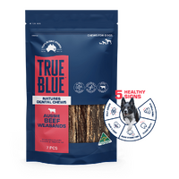 TRUE BLUE Natural Dental Chews are for complementary feeding only. The calories they provide should be taken into account, when preparing your dog's main meal.