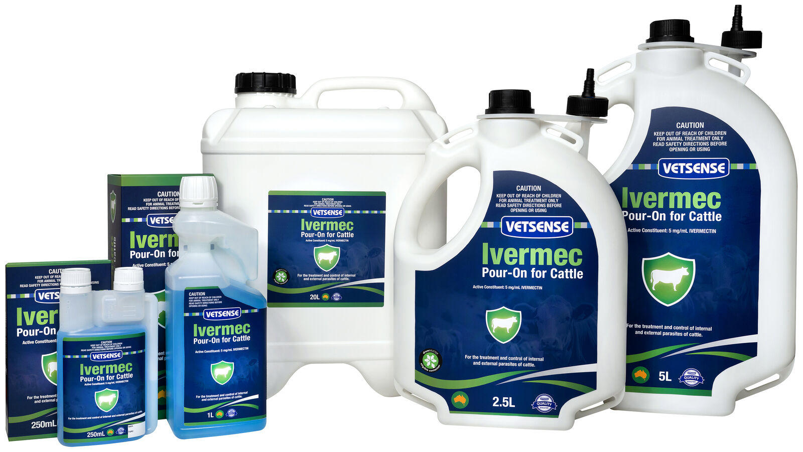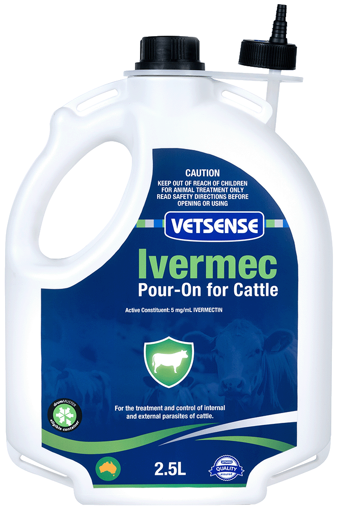 Vetsense Ivermec Pour-On is ideal for the treatment and control of internal and external parasites of cattle. Contains Ivermectin, a member of the macrocyclic lactone family of chemicals.