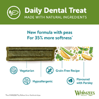 - EASIER TO CHEW: Our new Soft chews are crafted with peas and are 35% softer than our WHIMZEES Adult Stix or Brushzees, providing a gentle cleaning solution for your dog.
