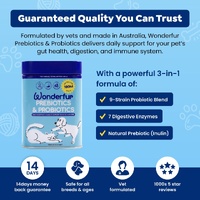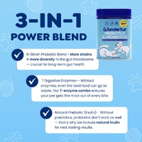 Support your pet's digestion, immunity, and overall wellness with Wonderfur Prebiotics & Probiotics, specially formulated for both dogs and cats. This premium blend contains 9 probiotic strains (180M CFU/g) including L. acidophilus, L. rhamnosus, and B. bifidum, plus nature prebiotic fiber to promote healthy gut flora, reduce inflammation, and improve nutrient absorption.