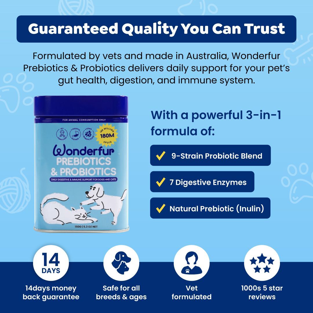 - Wonderfur Prebiotics & Probiotics is the ultimate daily supplement to support your pet's gut health, immunity, and overall wellbeing.