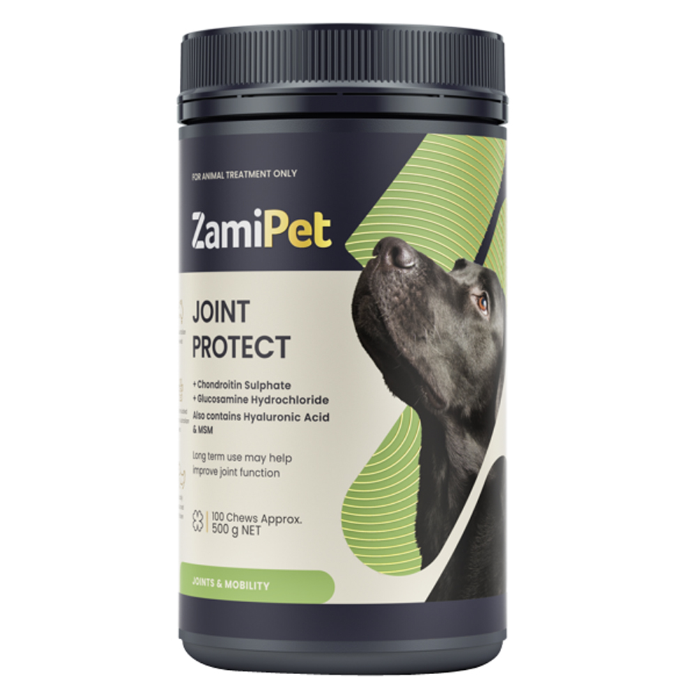 ZamiPet Joint Protect is a great tasting, breakable chew containing Chondroitin and Glucosamine plus Hyaluronic Acid and MSM, to support joint function in dogs.