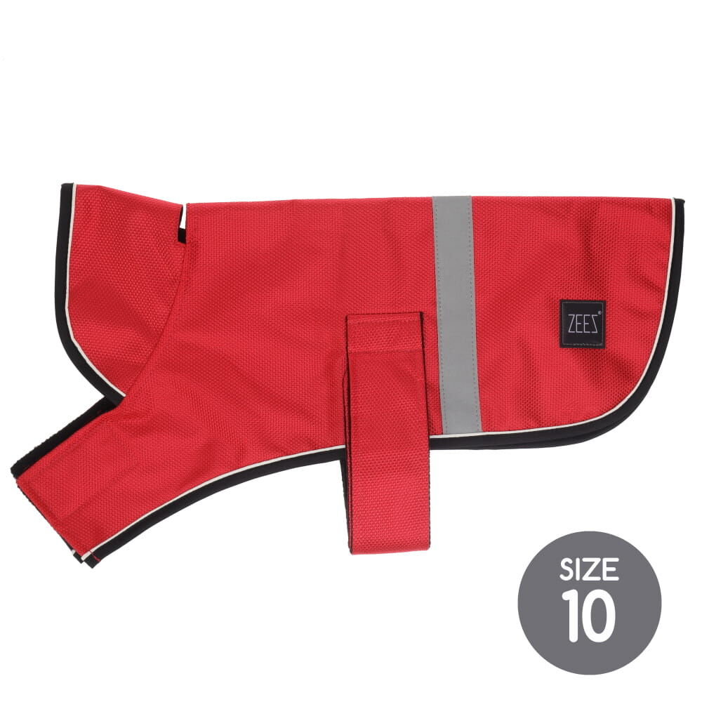 ZEEZ Dapper Dog Coats are made from a tough, 420 denier jacquard polyester with a PU coated outer shell that is water resistant and showerproof, keeping your dog drier on rainy days! The polar fleece inner keeps your dog warm and adjustable Velcro straps make it an easier coat to fit, plus internal elastic rear leg straps that help secure the coat at the back to reduce the wind getting in.